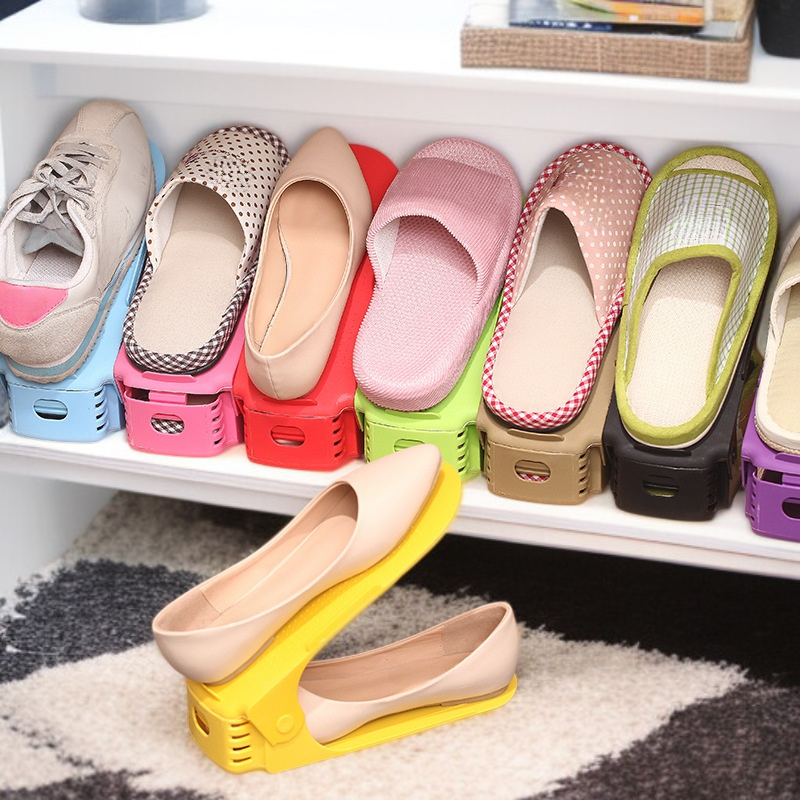 多機能調節可能な2段シューズラック寮・寝室用省スペース収納キャビネット